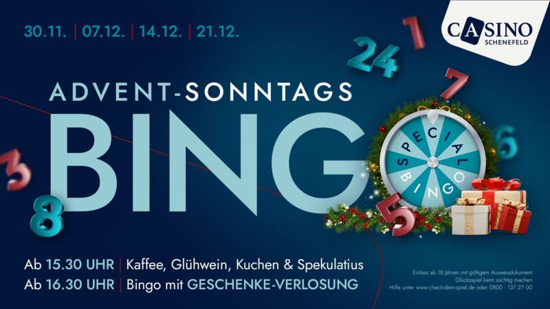 Ab 16:30 Uhr heißt es dann: Bingo-Zeit! Freuen Sie sich auf spannende Runden und eine festliche Geschenke-Verlosung.