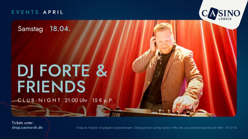 Am 18. April verwandelt sich das Casinos Lübeck in eine moderne Lounge-Oase. Gäste dürfen sich auf eine einzigartige Mischung aus musikalischer Atmosphäre und Casino-Flair freuen. DJ Niklas sorgt ab 21:00 Uhr mit feinen Deep-House-Grooves, Lounge-Sounds und ausgewählten Clubtracks für den perfekten Soundtrack des Abends.